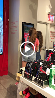 Two girls in NYC.  Exploring Macy's, a souvenir store, The Empire State building.  And having fun in general.